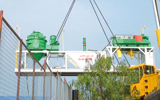 将钻屑甩干机,和钻井液离心机的升降支架降到最低处,放在翘座上,能够满足大部分地区内陆运输的要 求,无须拆卸甩干机和离心机。