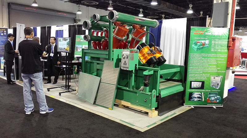 本次展会冠能固控主要展示了废浆处理设备,日益严格的环保要求,对钻井废弃泥浆的处理的要求也越来越高,针对废浆处理,冠能固控研发生产的钻屑甩干机及废弃泥浆处理离心机可以满足客户的处理要求,在国内外市场上得到了客户的一致好评。